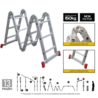 ESCADA ALUMÍNIO ARTICULADA 4 EM 1 4X3 DEGRAUS BOTAFOGO - Ref.ESC0292