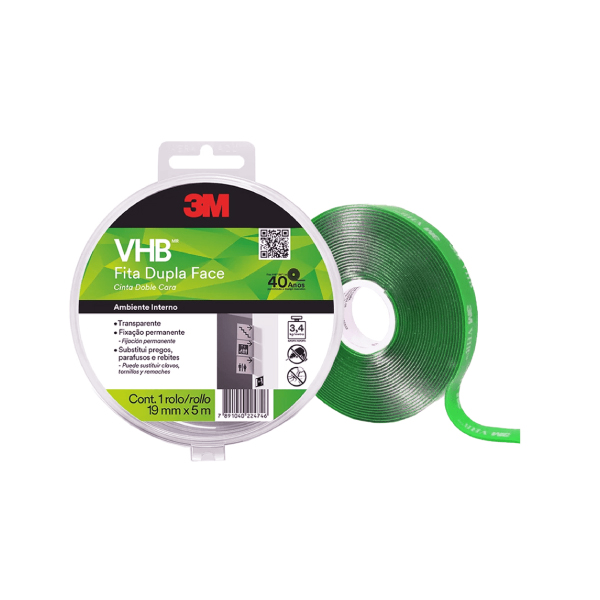 FITA DUPLA FACE 19MMX5M VHB 4910 TRANSPARENTE 3M - Ref.HB004459218