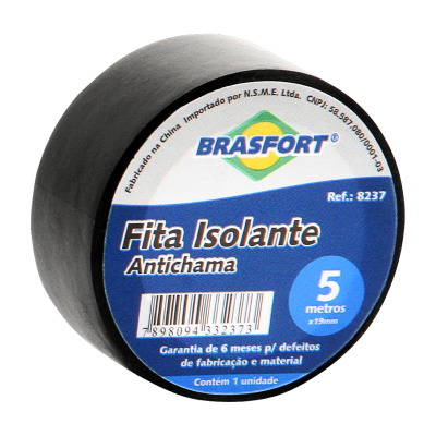 FITA ISOLANTE ANTICHAMA 05M X 19MM PRETA BRASFORT - Ref.8237