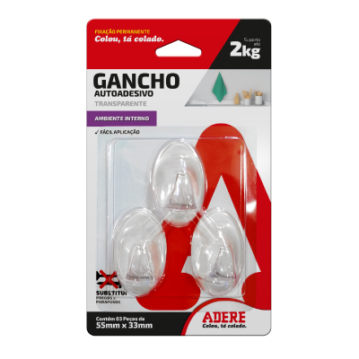 Gancho Autoadesivo Médio Branco C/3 Adere - Ref.61801180169