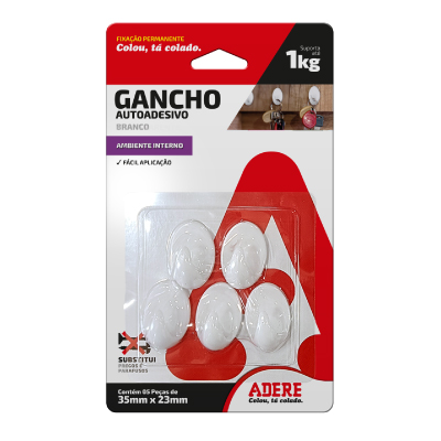 Gancho Autoadesivo Pequeno Branco C/5 Adere - Ref.61801180144