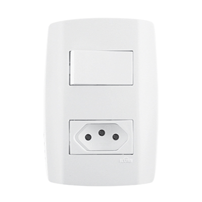 INTERRUPTOR EMBUTIR 1 TECLA+TOMADA SLIM BRANCA 10A ILUMI - Ref.80200