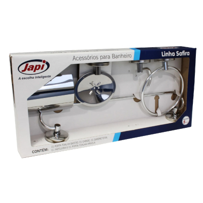 KIT ACESSÓRIOS P/BANHEIRO CROMADO 5 PEÇAS CASA JAPI - Ref.JKCC