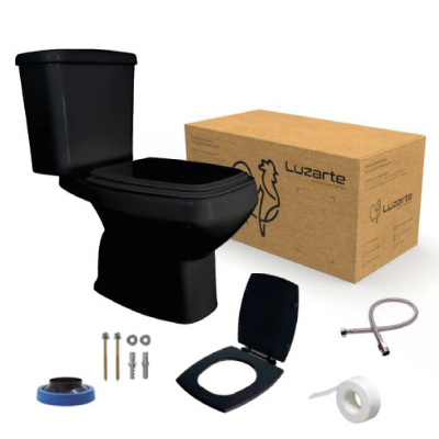 KIT COMPLETO BACIA+CAIXA DUAL FLUX+ACESSÓRIOS ANTURIUS PRETO LUZARTE - Ref.I1.KB.6.47.1.4