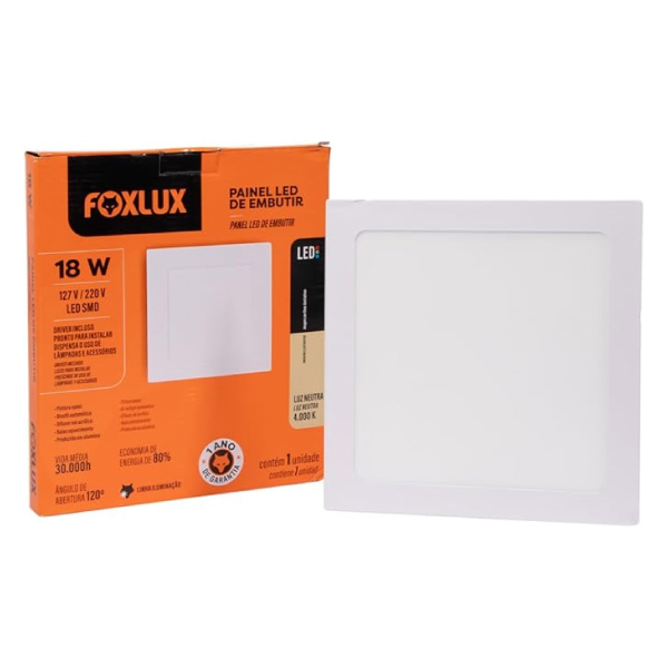 PAINEL LED QUADRADO EMBUTIR 18W 6500K FOXLUX - Ref.LED90.48
