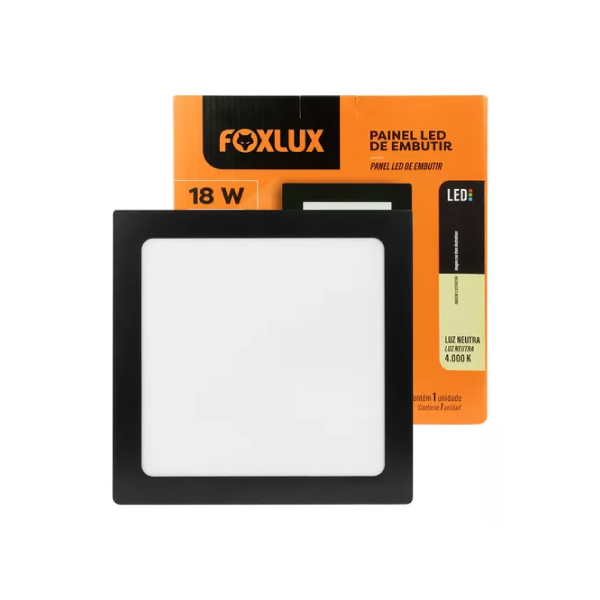 Painel Led Quadrado Embutir 18w Preto 6500k Foxlux - Ref.LED90.214